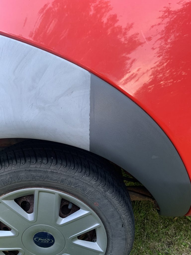 2. Dab product over surface of trim and tyre and spread evenly.